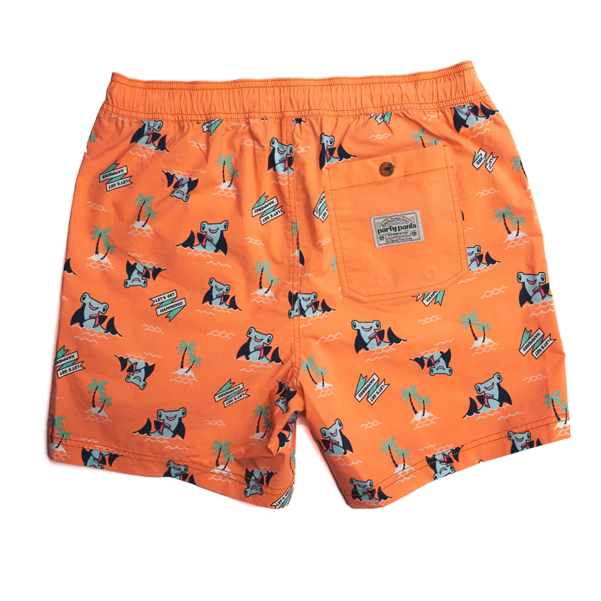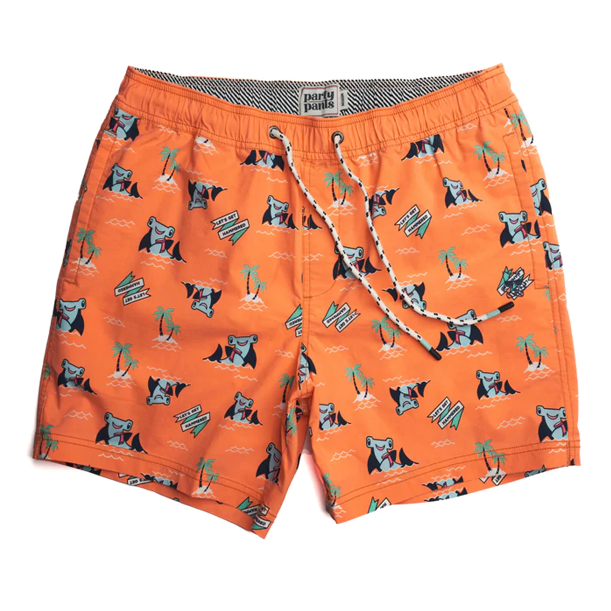 The Party Pants Men’s Hammertime Shorts when worn make it impossible to resist the urge to crack a smile or break a dance move! These shorts are made of 2-way stretch fabric with quick-drying properties that make for a comfortable feel, especially in between pool splashes and celebratory beers. It features a Party Pants Metal Ring Bottle opener and Permanent Vacation motel key chain so you can make salutes and have easy access to your keys to retreat to your fortitude. Front seam, button rear, and an internal stash pocket are included so you can store your personal essentials. Wear the Party Pants Men’s Hammertime Shorts to all your pool parties and get down with the rhythm!