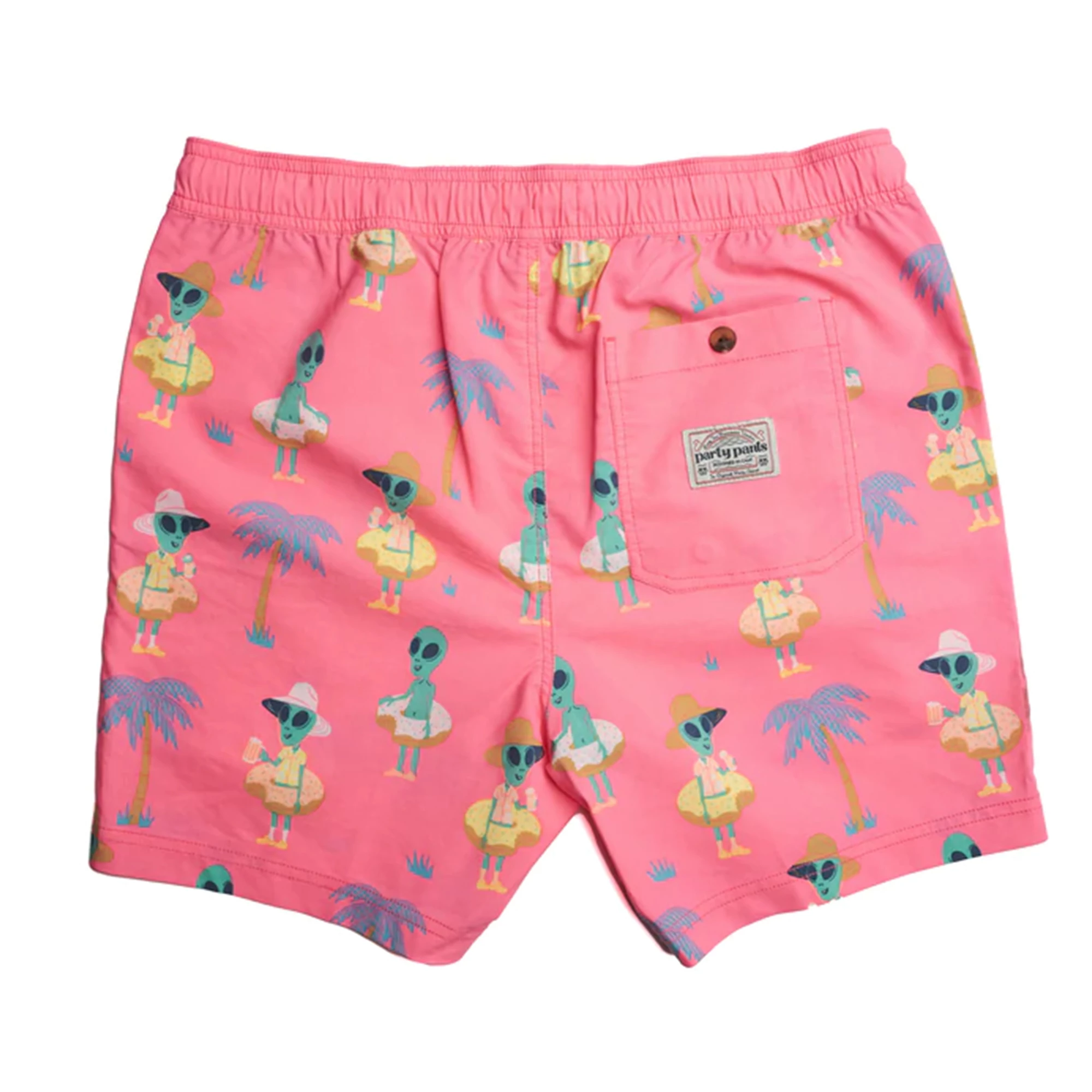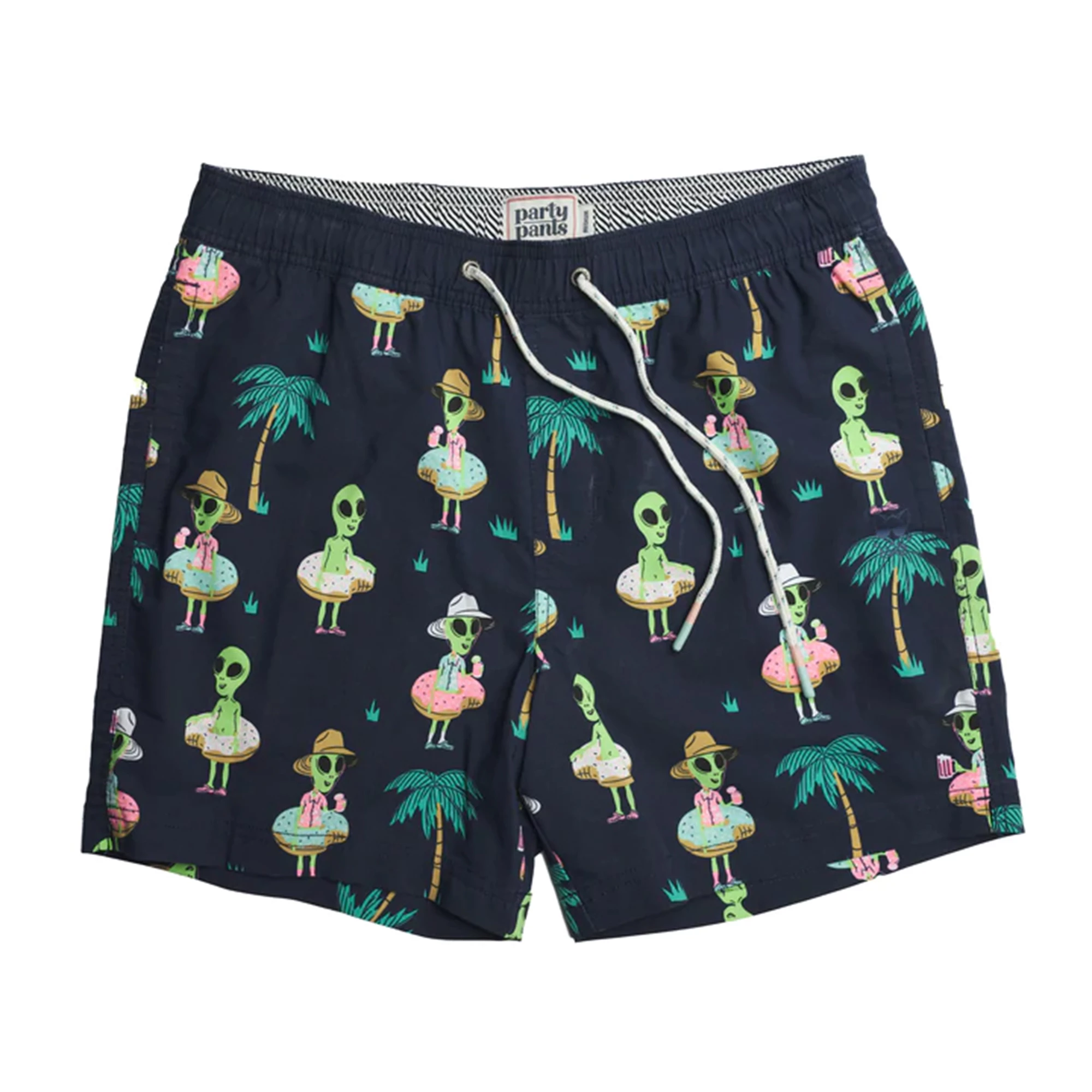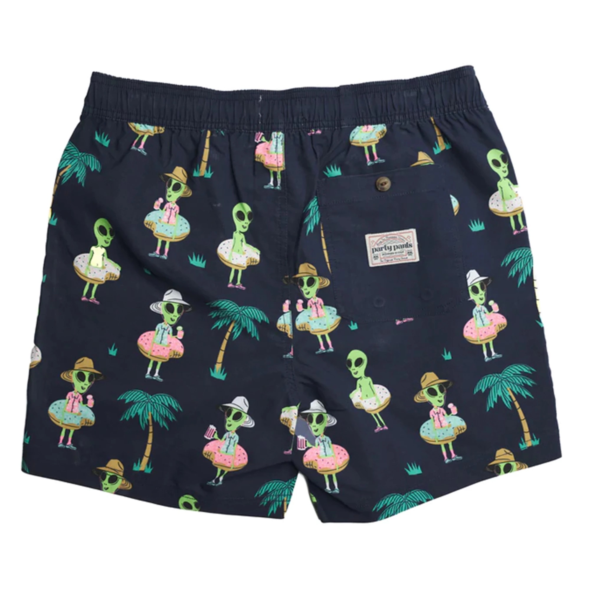 The Party Pants Men’s Pool Fool Shorts are a partygoer’s new swim essential with features that are out of this world! These shorts are made of 2-way stretch fabric with quick-drying properties that make for a comfortable feel, especially in between pool splashes and celebratory beers. It features a Party Pants Metal Ring Bottle opener and Permanent Vacation motel key chain so you can make salutes and have easy access to your keys to retreat to your fortitude. Front seam, button rear, and an internal stash pocket are included so you can store your personal essentials. Be the life of the party in the Party Pants Men’s Pool Fool Shorts.
