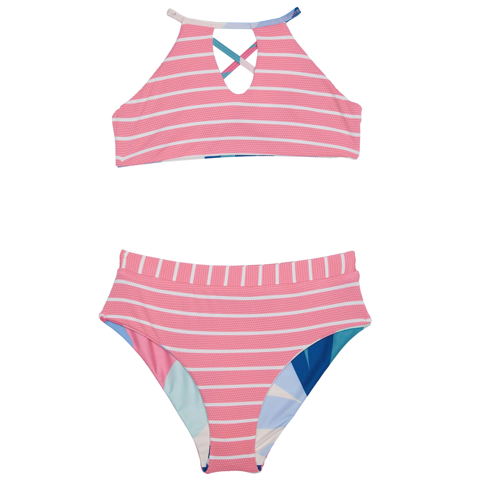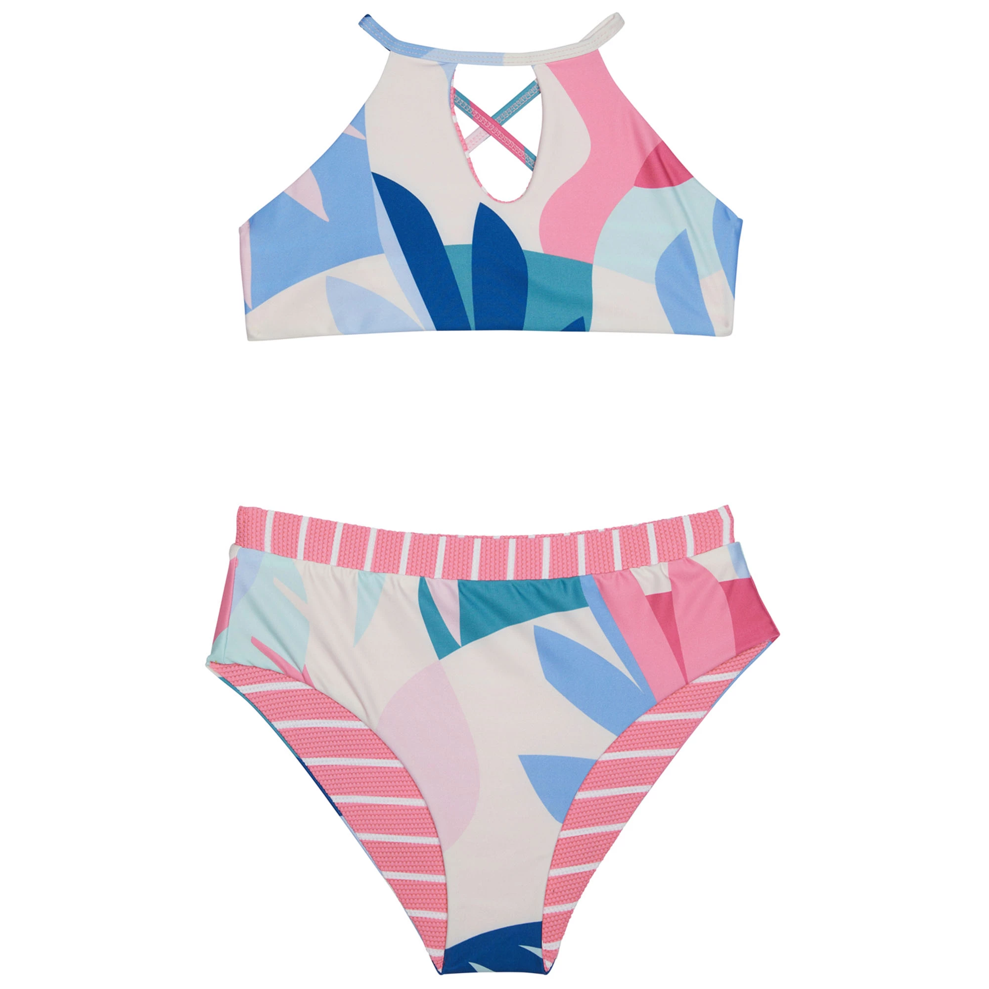 Splendid Girls Mosaic Palm Reversible High Neck Swimsuit Set