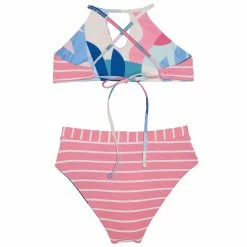 The Splendid Girls’ Mosaic Palm Reversible High Neck Swimsuit Set features the Mosaic Palm print on one side with textured pink stripes on the reverse. This bikini set has two looks for the price of one. A fun design that matches mommy’s fun style offered in Splendid Women’s swim!